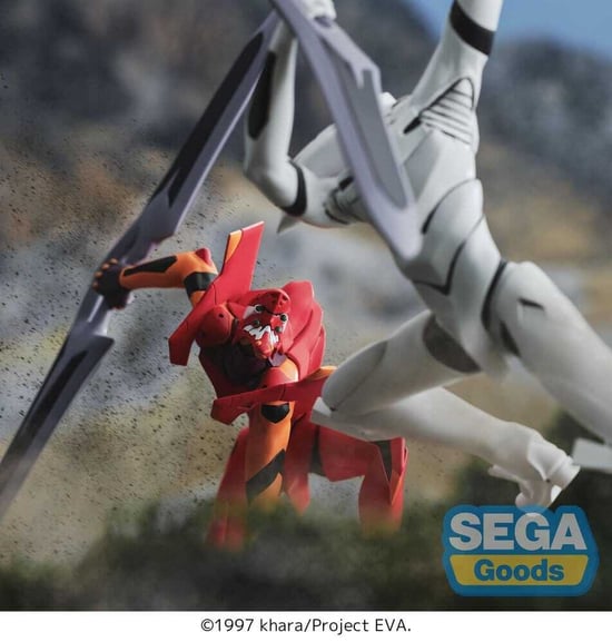 This PVC figure from SEGA features the Production Model from Rebuild of Evangelion. The figure is part of the XrossLink series and stands approximately 16 cm tall.